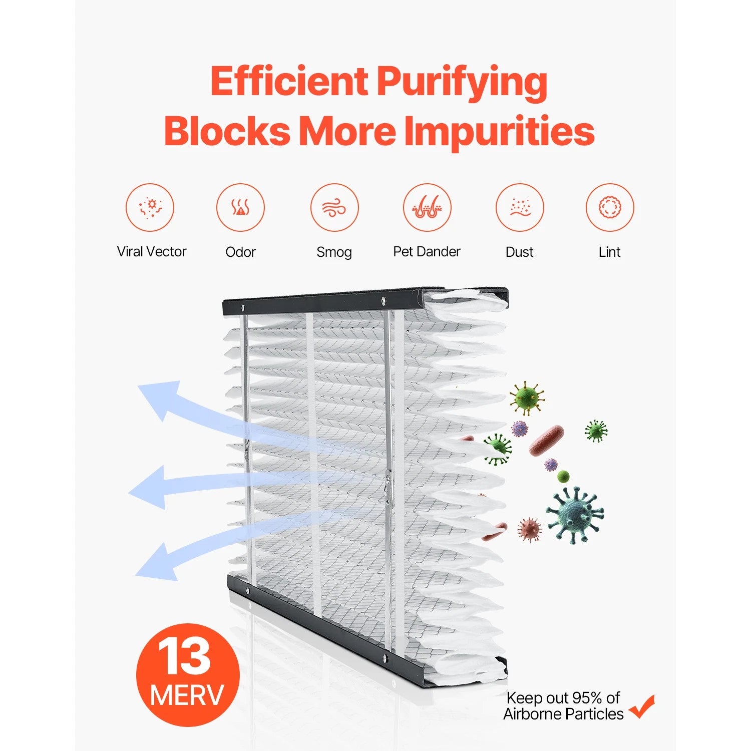 Filtration Rating: MERV 13, which captures finer airborne particles—commonly including allergens, smoke, bacteria, and some viruses.