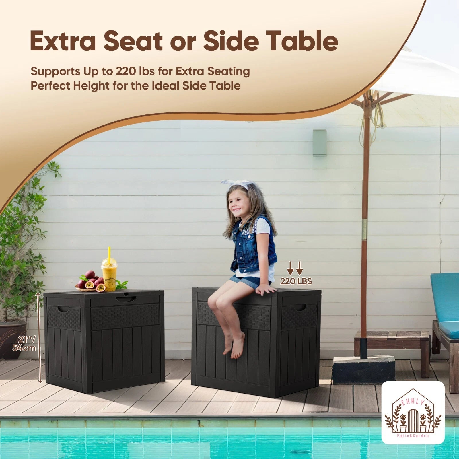 Crafted with a sturdy build, this deck box doubles as a stylish seating option or side table on your patio, deck, or balcony. The easy-to-open lid and lightweight design ensure quick access while keeping contents safe and dry.