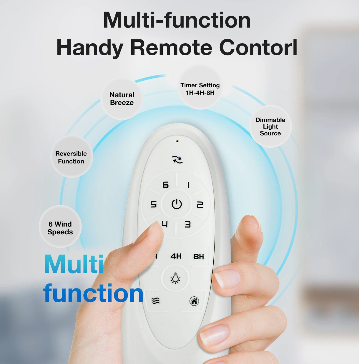 - Ceiling fan with remote has reverse airflow function, change the direction by pressing the button on the remote.