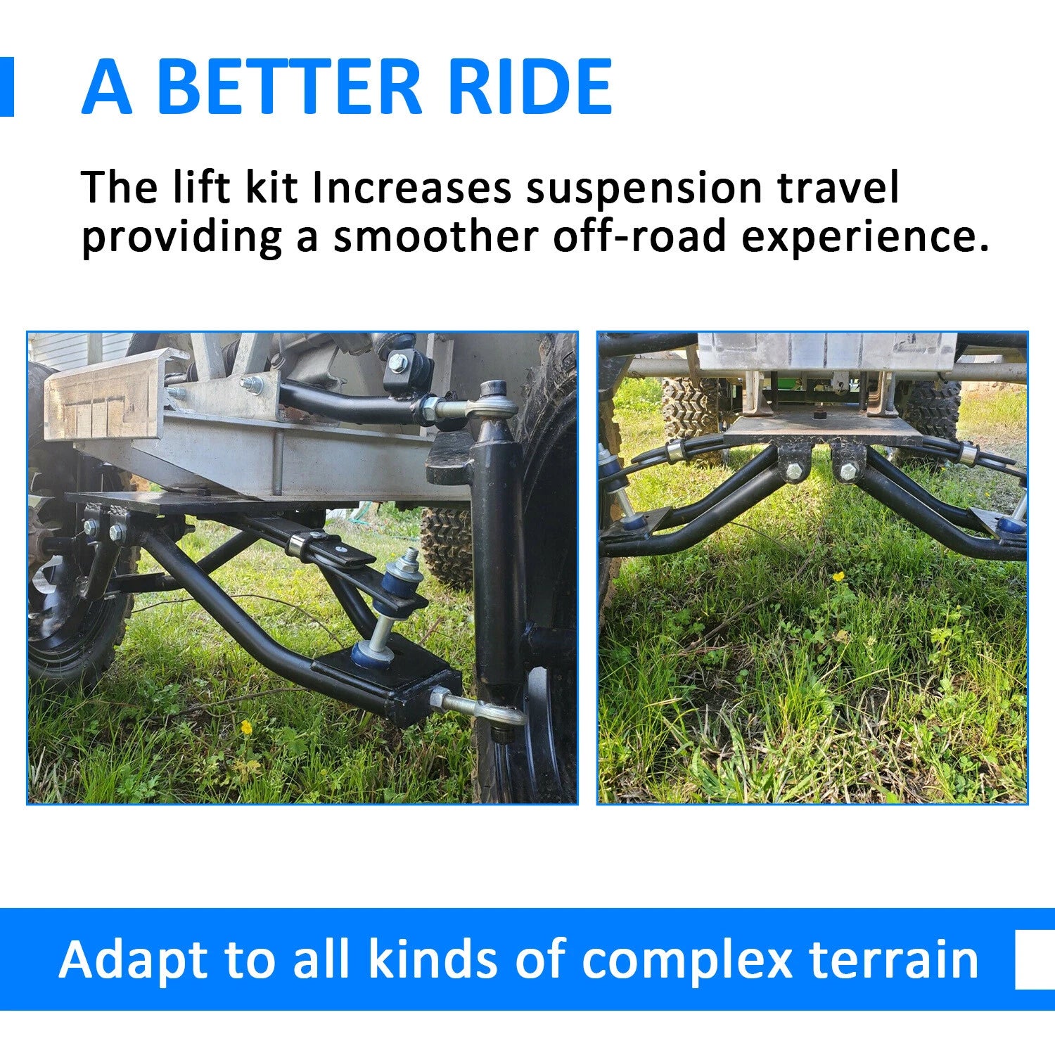 - Easily install this lift kit to raise your golf cart by 6 inches, providing more ground clearance for off-road adventures and rough terrains.
