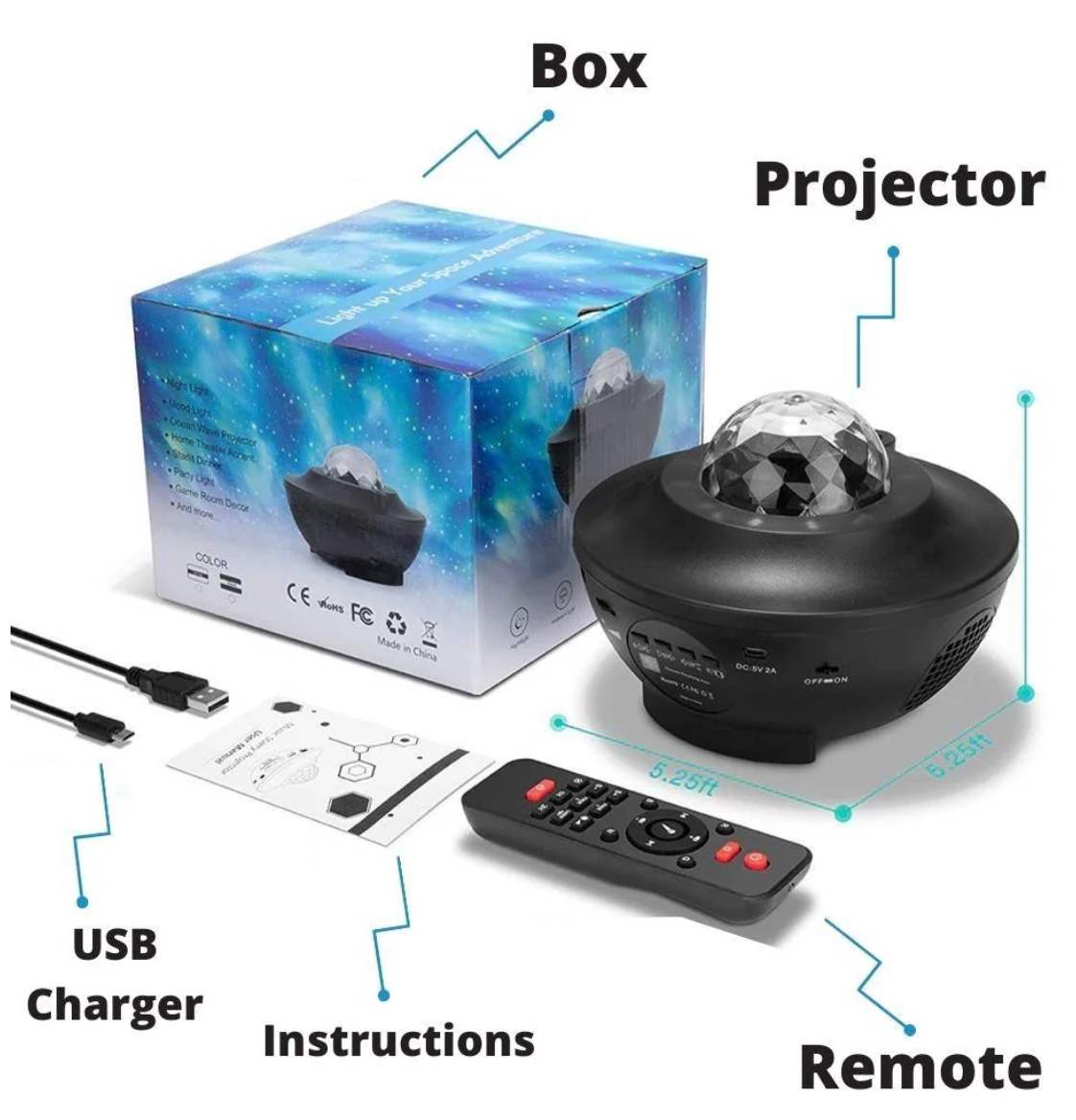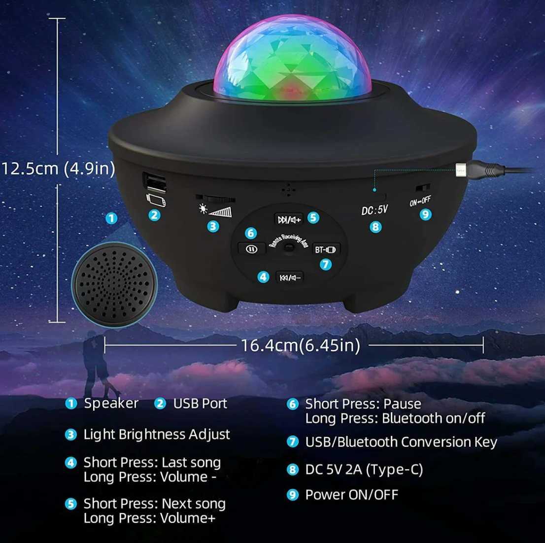- Incorporated Speaker & Voice Control Twinkling: The projector has an integrated speaker which can be controlled through Bluetooth or U Disk. The lights will spark with the beat of your music with the updated voice control system.