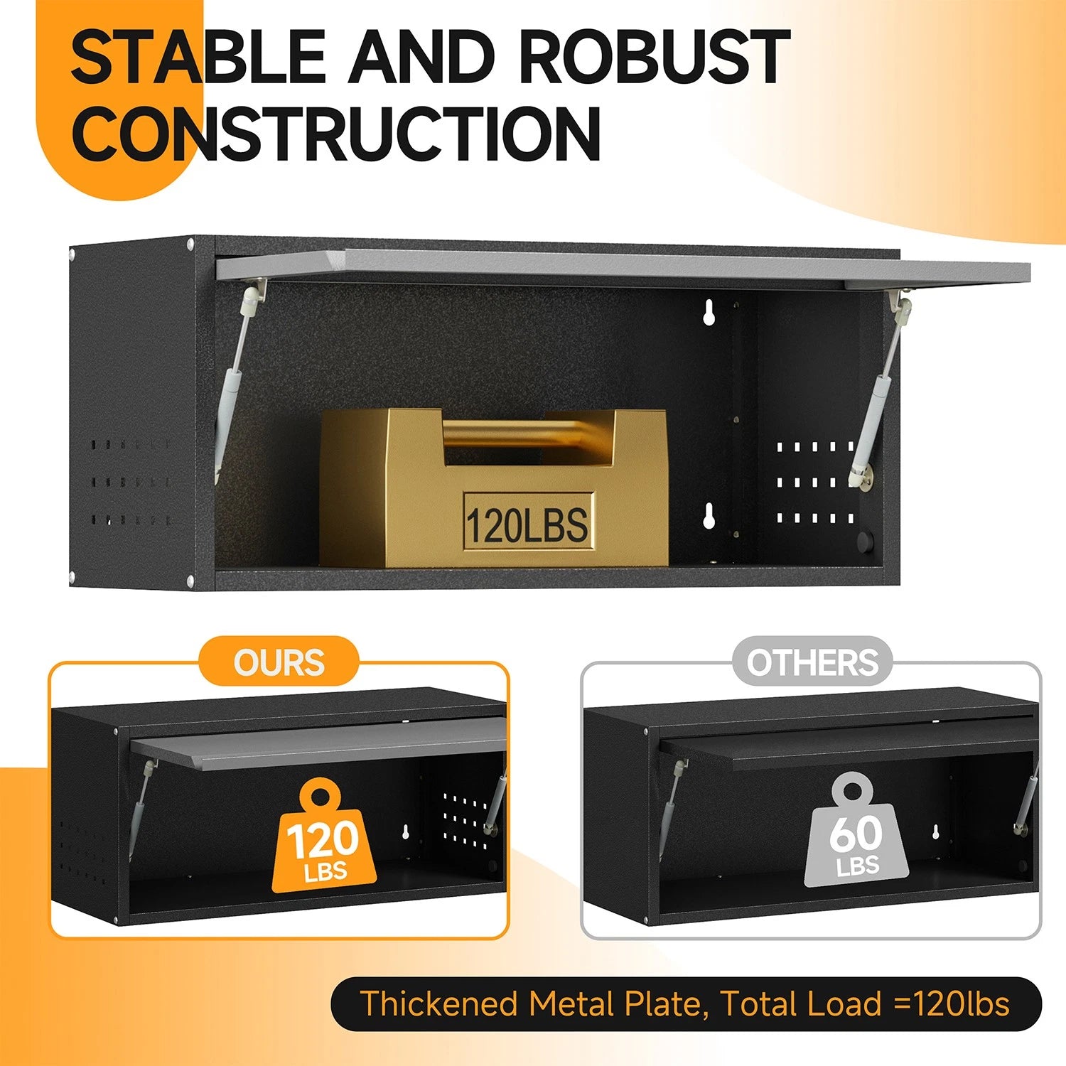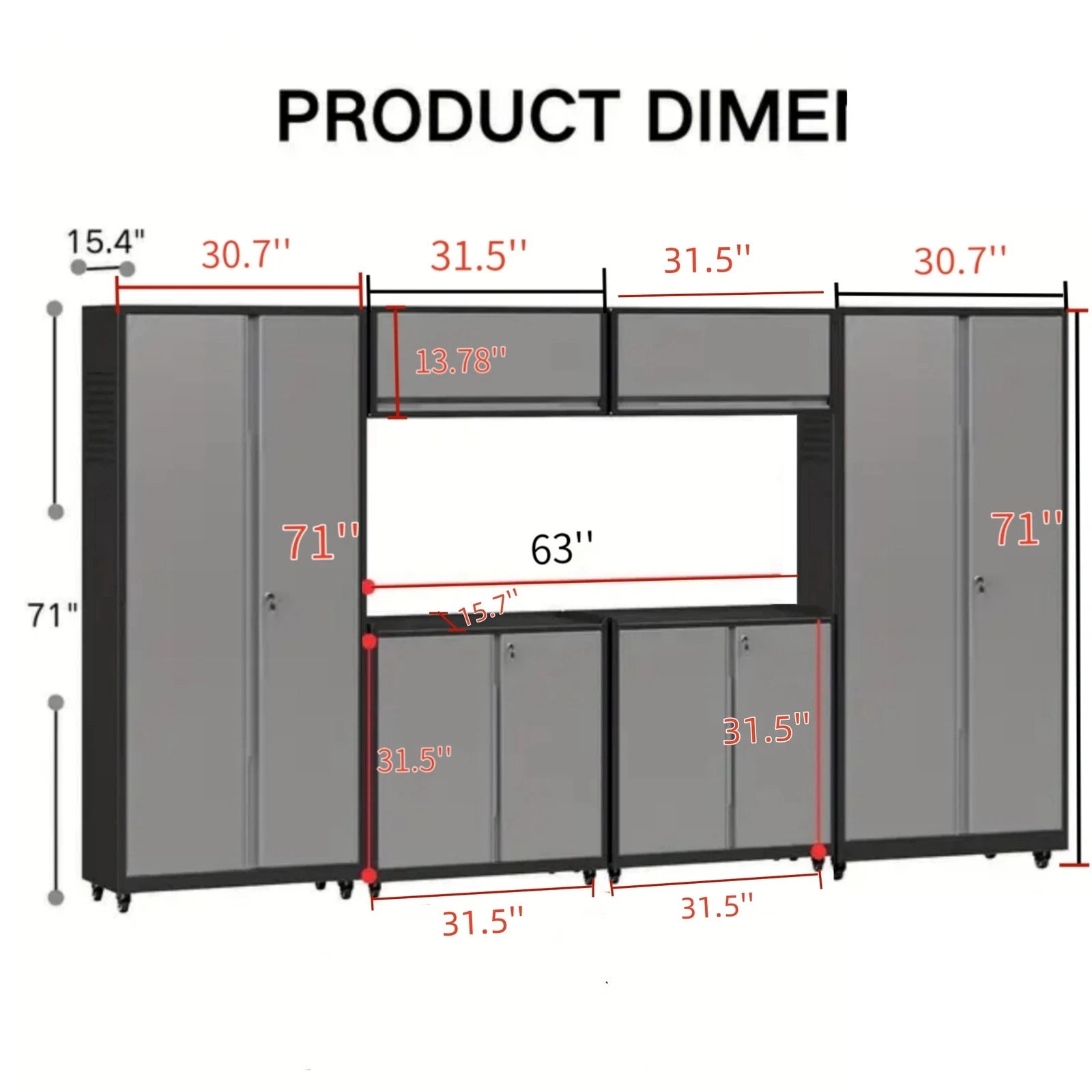 - 【Upgraded Design & More Space】6pcs Set Garage Mounted Storage System (19.69"H Wall Cabinet*2+31.5"H Tool Cabinet*2+71"H Tool Cabinet*2) . The storage cabinet set offers plenty of space for your storage needs. The interior and door also add pegboard design, perfect for some tools that need to be hung.