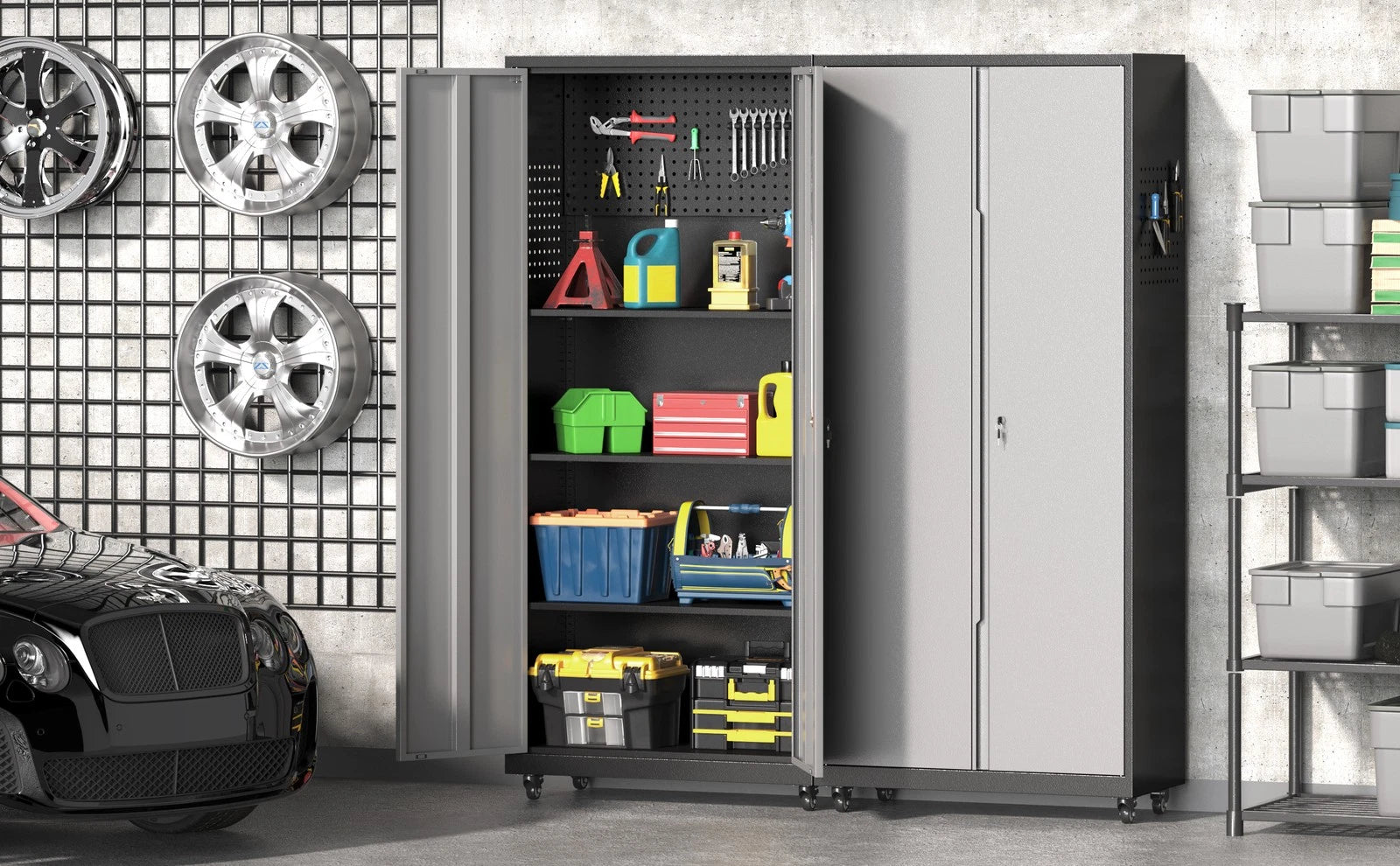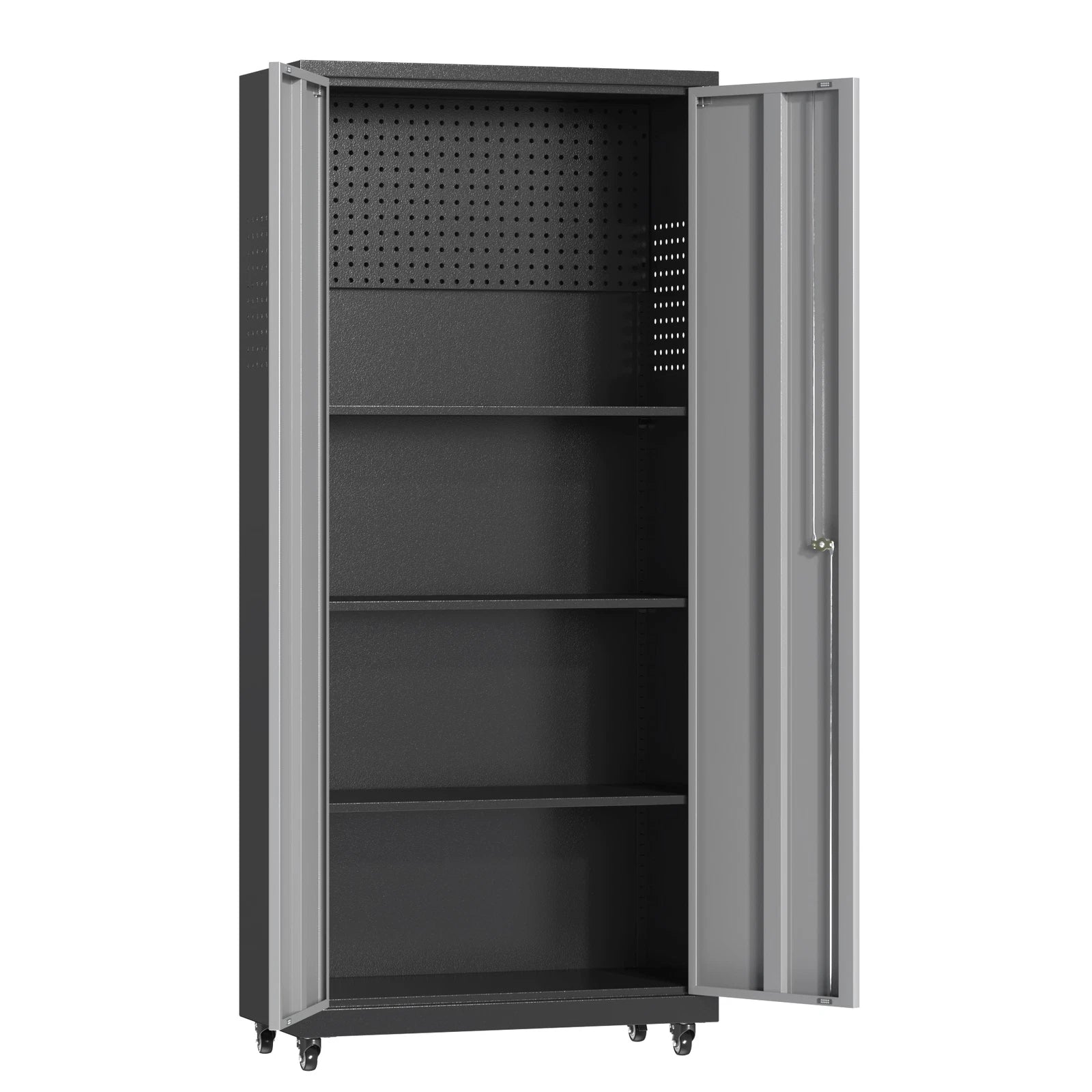- 【Multi-purpose Large Storage Cabinet】Our metal tall storage cabinets come with 360-degree swivel wheels as well as pre-drilled holes that can be mounted to the wall, making them very safe and sturdy. Ideal for use in garages, offices, utility rooms, workshops or anywhere you need to keep things tidy. This metal garage storage cabinet is absolutely ideal for perfect storage.
