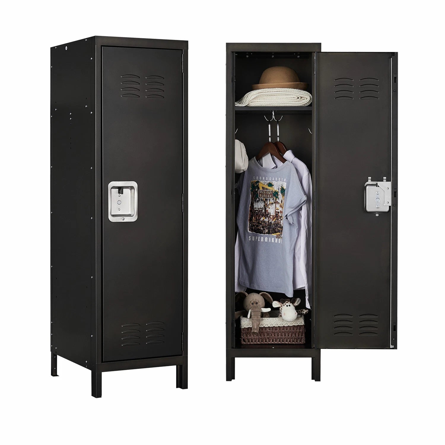 Add a touch of industrial charm to your space while keeping your belongings safe and organized. This 55-inch metal storage cabinet combines durability with a sleek retro design, making it perfect for both home and office use. Crafted from high-quality steel, it offers long-lasting strength and stability, while the lockable door ensures your valuables, clothes, or documents are securely stored.