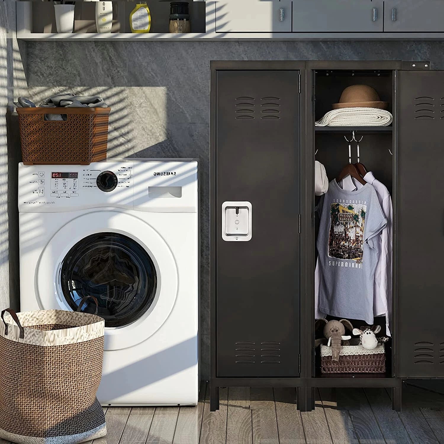Bring both style and practicality into your storage solutions with this retro metal locker wardrobe.