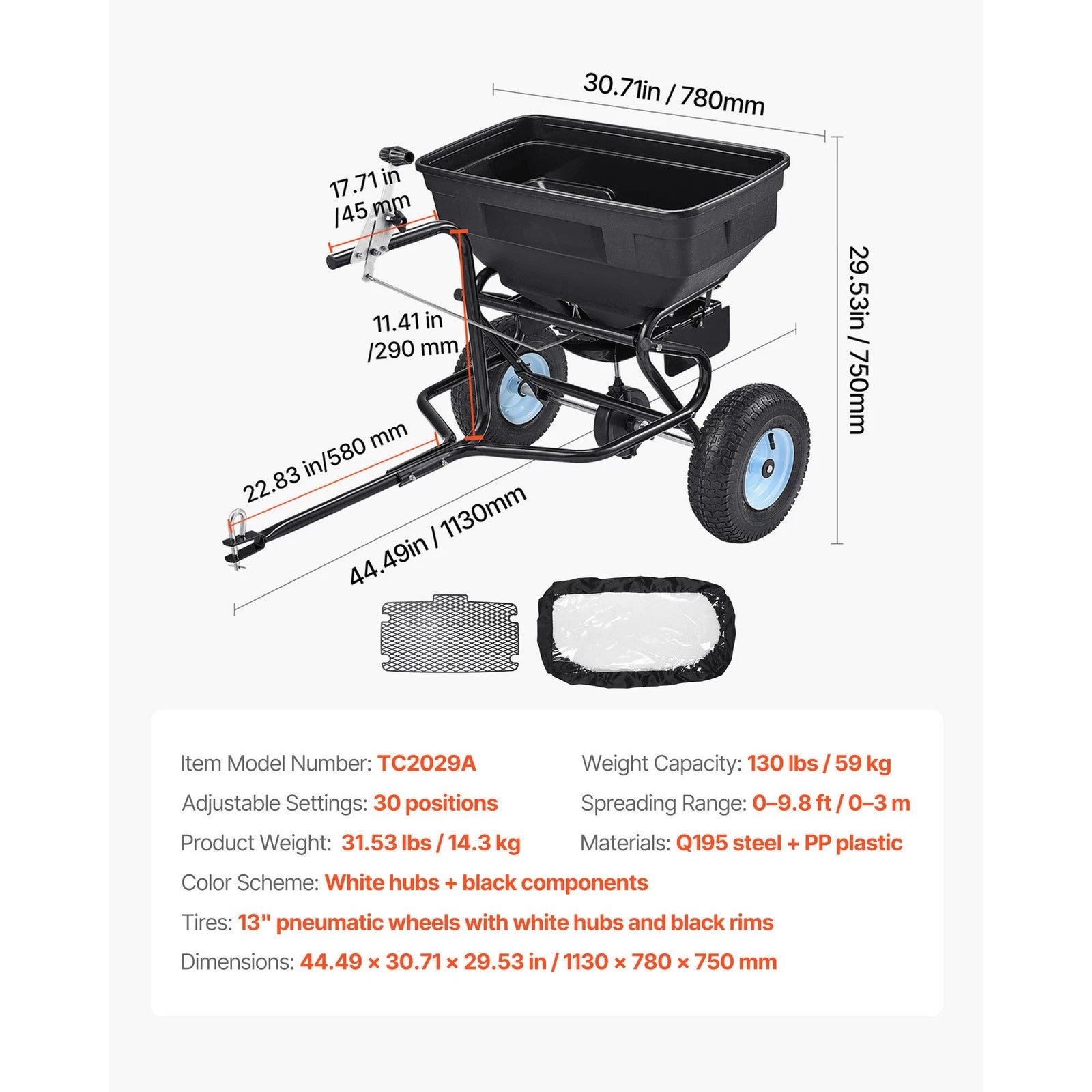 Tow-Behind Broadcast Spreader 130LB 15 Setting 0-9.8 ft Spreading Width for Seed