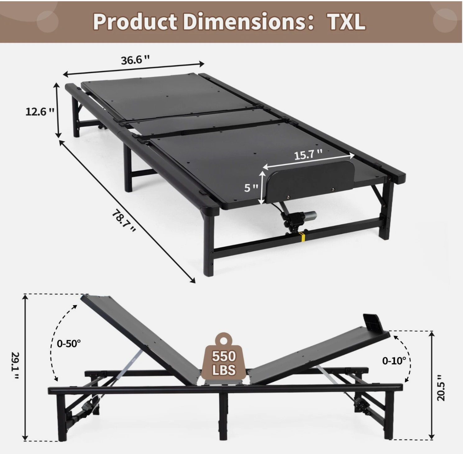 Twin XL Electric Bed Frame Head & Foot Incline Bed Base w/ Wired Remote Control