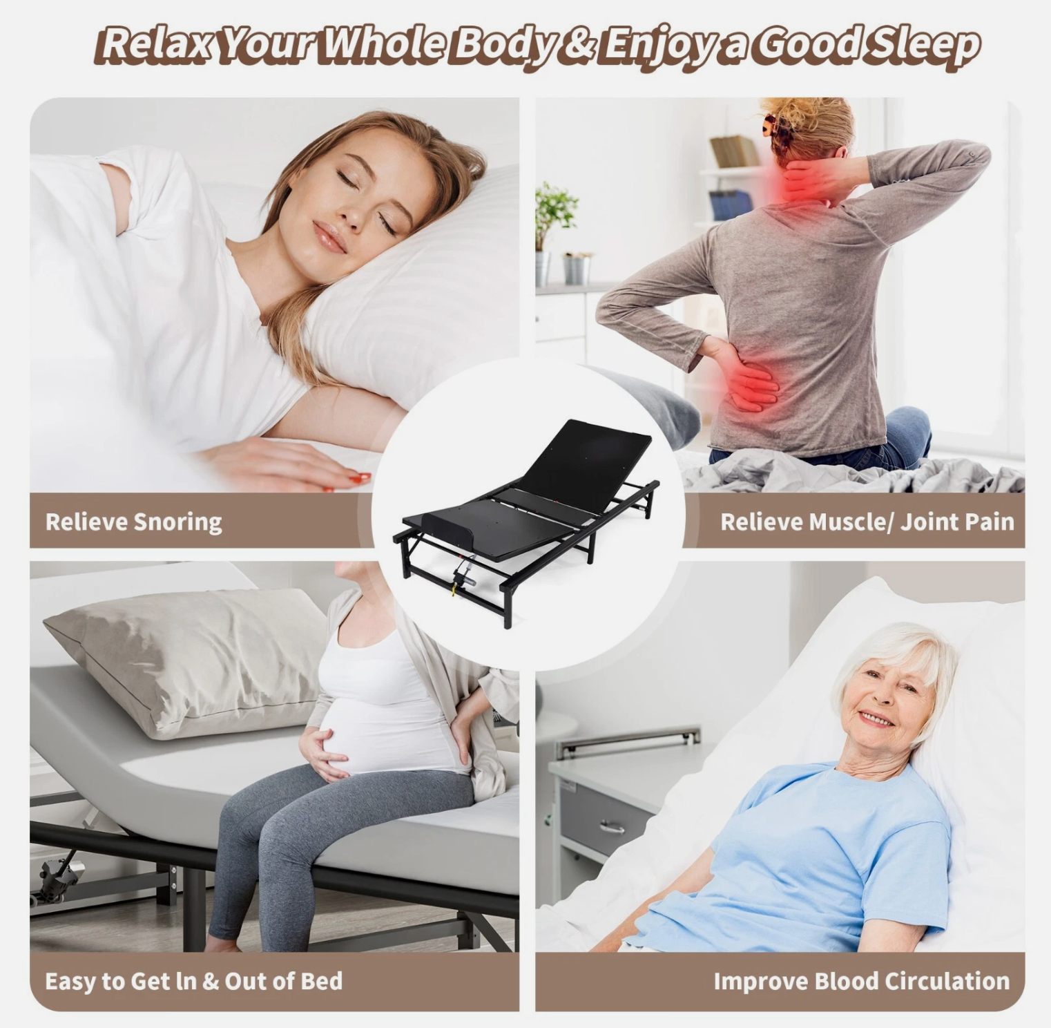 【Adjustable for Enhanced Comfort】: This TXL bed frame allows you to adjust the angle of the head and foot for ergonomic positions, offering improved spine support and helping reduce back pain. Compatible with most mattresses.
